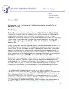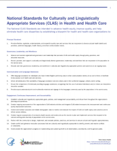 Media Resources Helpful Videos Publications News More Language Access Provisions of the Final Rule ImplementingSection 1557 of the Affordable Care Act U.S. Department of Health & Human Services National Standards for Culturally and Linguistically AppropriateServices (CLAS) in Health and Health Care U.S. Department of Health & Human Services
